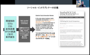 On January 15th, Shizenkan University had an online open class on the topic of Social Intrapreneurship presented by Professor, Peter D. Pedersen. The class began with the question, “Are you job crafting now?” Job crafting is a new concept of work that differs from mass-production type work t where the  employee adds his/her own taste to the work to make it worthwhile. Intrapreneurship is positioned as one approach to job crafting.