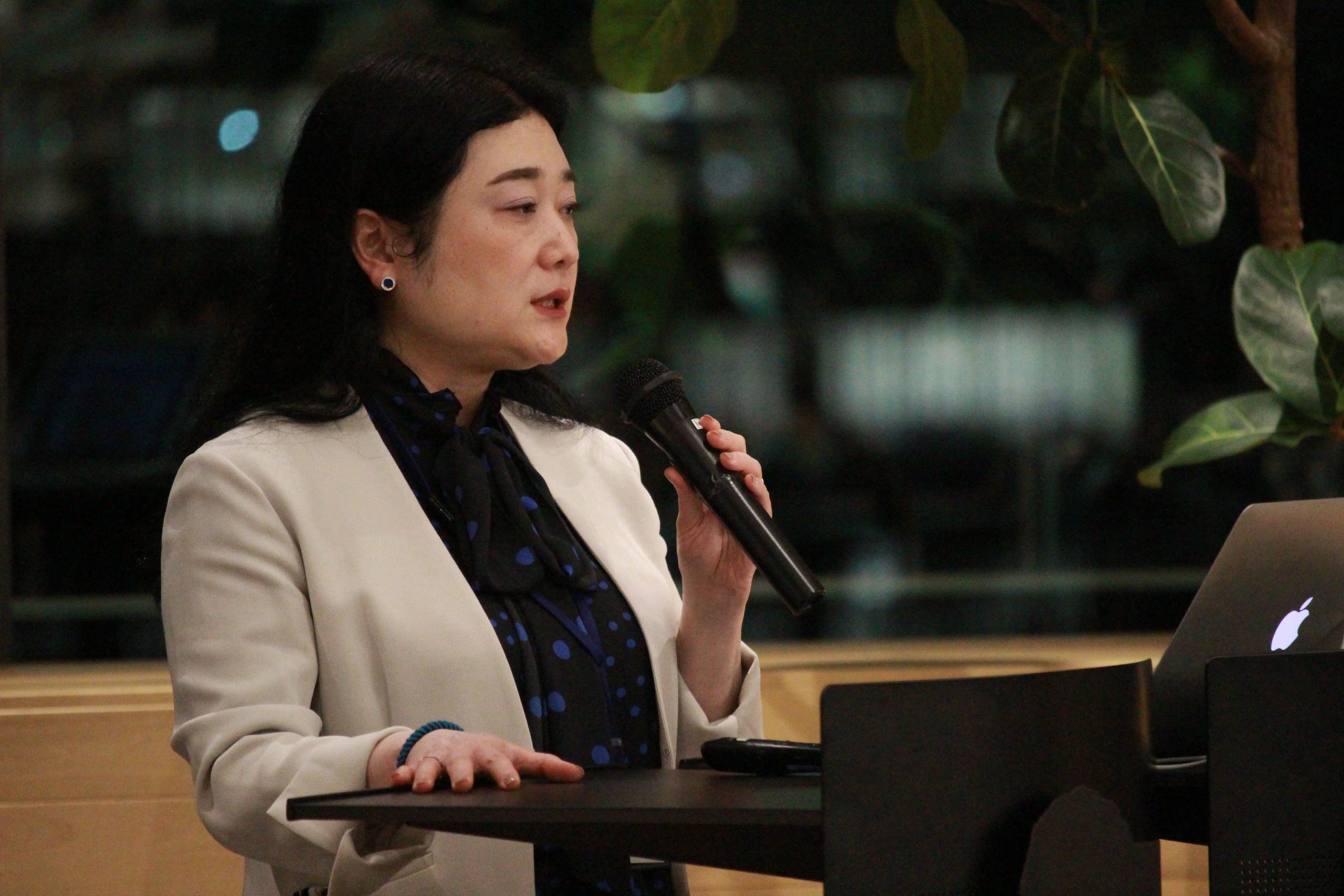 The second guest of the evening, Ms. Tomoko Ina, took the podium to outline basic ideas for building an ecosystem that enables the creation and development of local zebra companies that prioritize values such as sustainability, social responsibility and community. Local zebra companies are leaders in solving local social issues through business, collaborating with diverse stakeholders, and creating social impact.