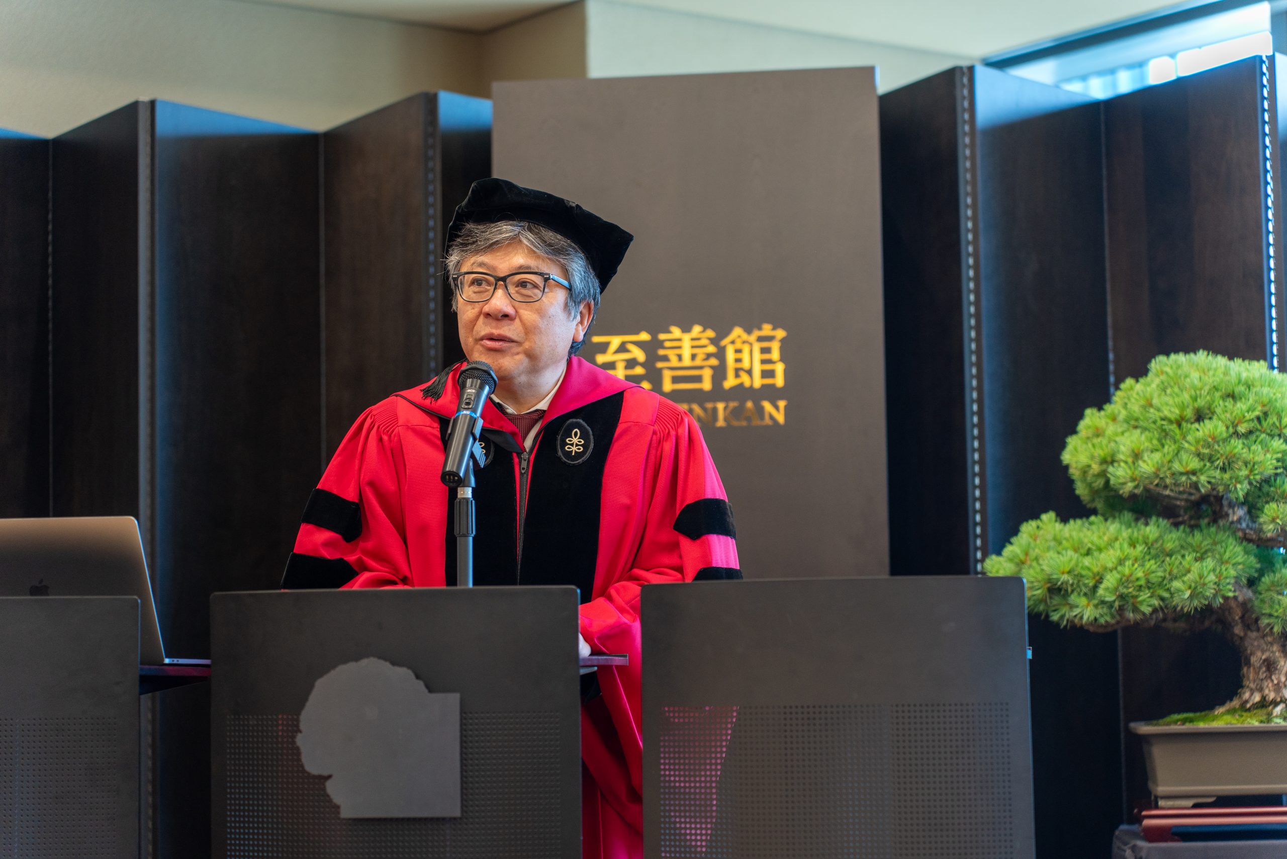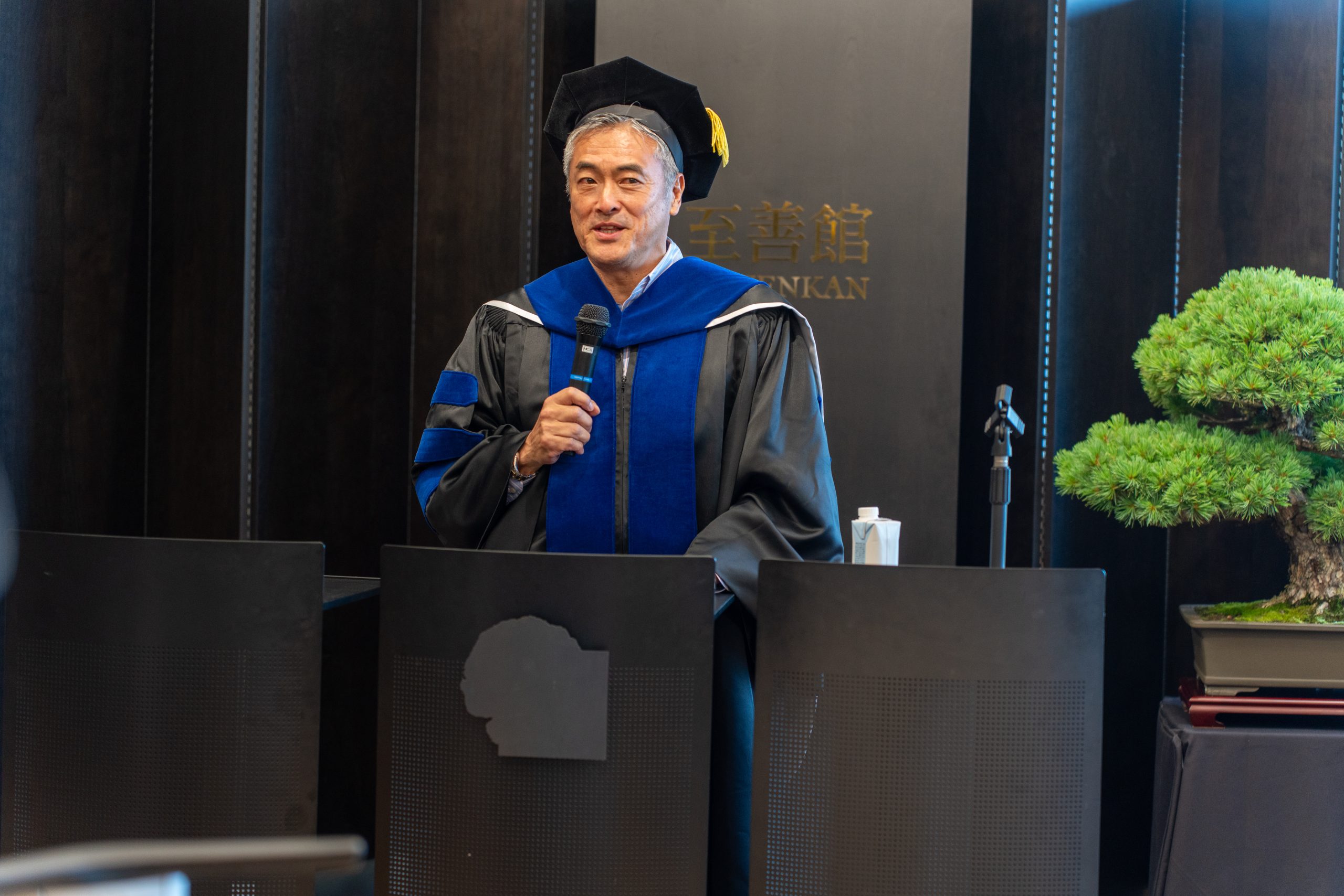 The ceremony continued with heartfelt congratulatory messages from notable personalities, including Mr. Masaki Yamauchi (Executive Advisor, Yamato Holdings Co., Ltd.), Seiichi Kondo (Co-chair of the Shizenkan Center for Liberal Arts and Leadership), Shizenkan Vice President Dr. George Olcott, Ms. Sandra Wu (Chairperson and CEO, Kokusai Kogyo Co.,Ltd. and Board Member, UN Global Compact Board), and Mr. Kakutaro Kitashiro (Chairperson, ISL and Honorary Executive Advisor, IBM Japan). Each speaker conveyed their congratulatory remarks and words of encouragement, celebrating the graduates’ accomplishments and urging them to continue striving for excellence.
