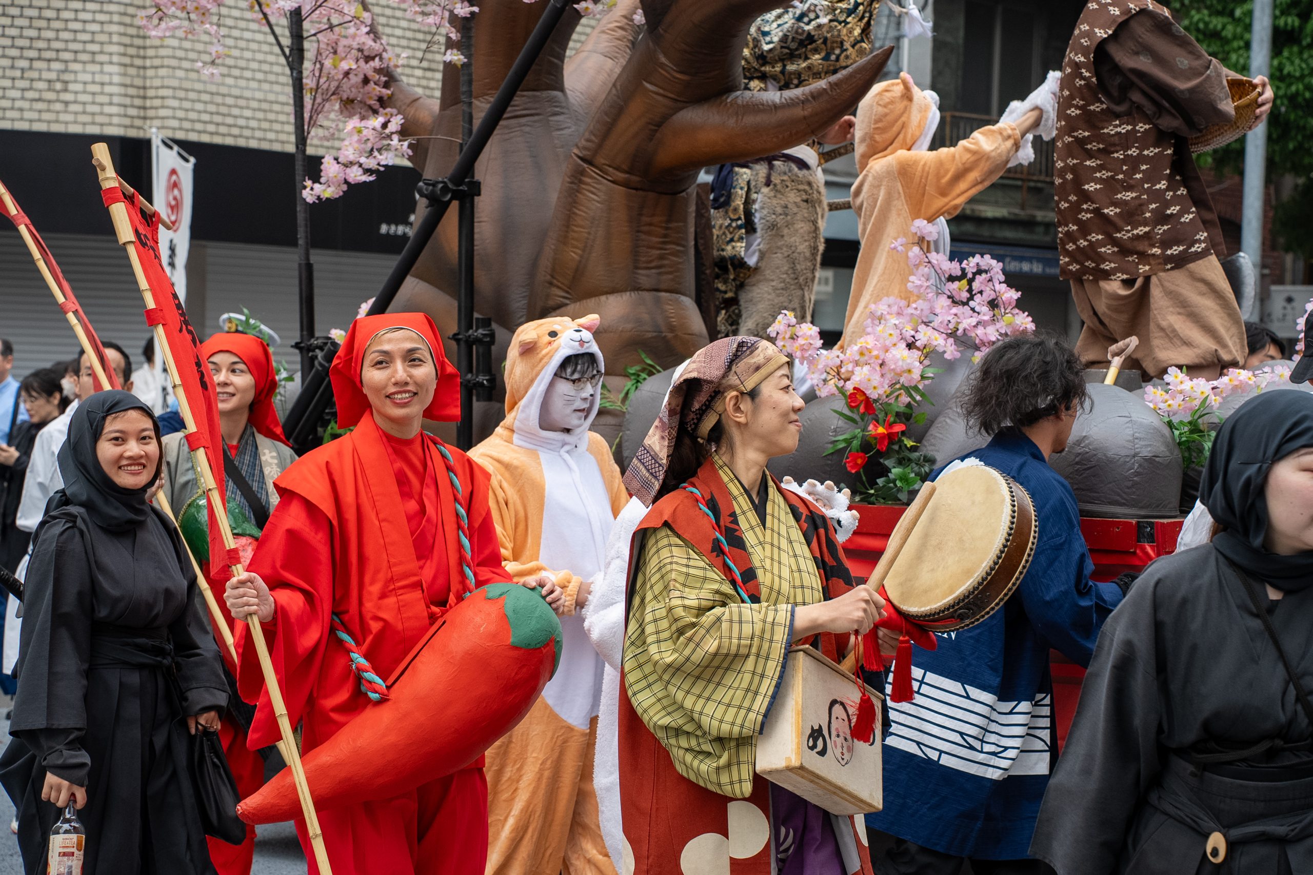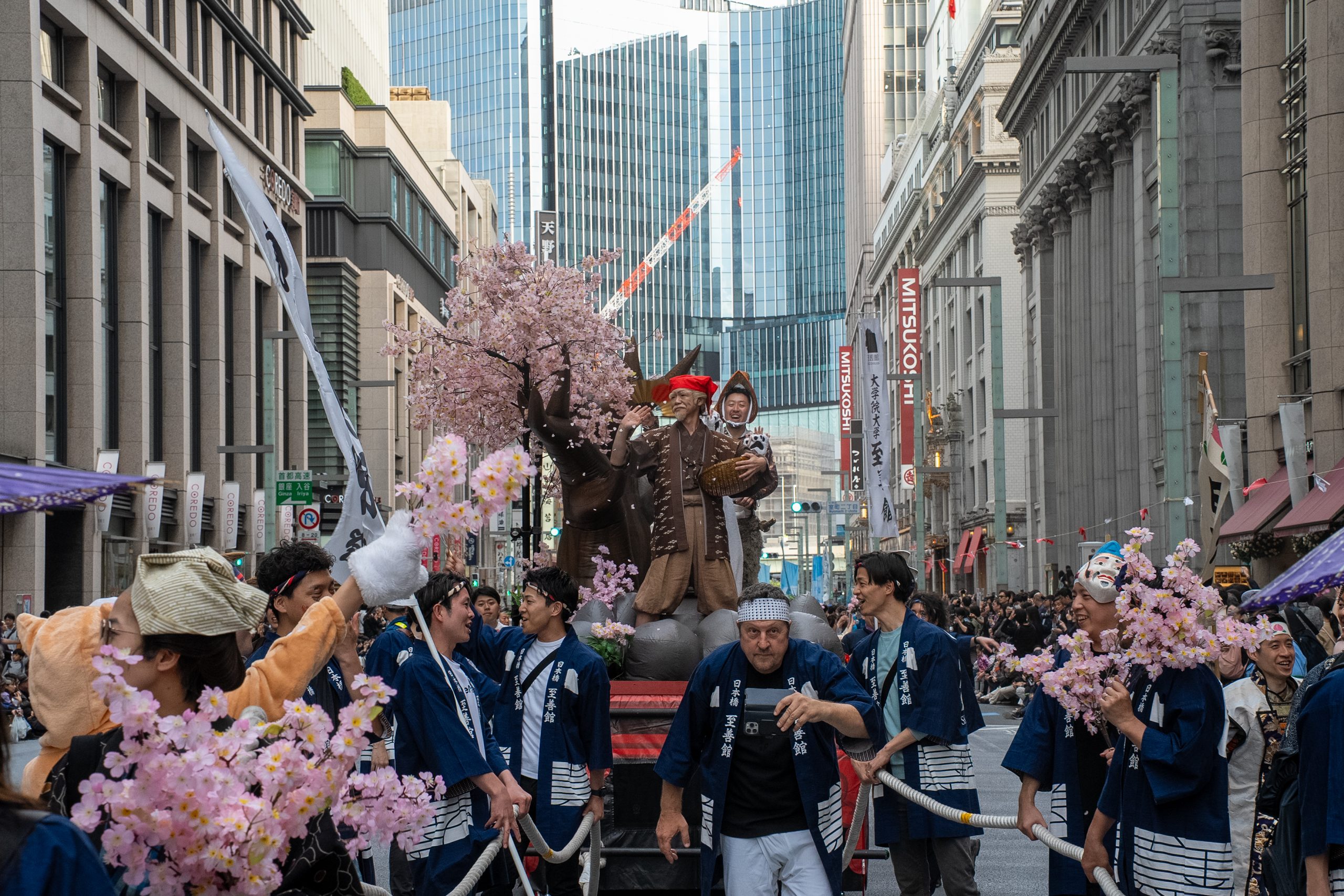 Shizenkan has been participating in the Kanda Festival since 2019, and each year students help pull the “Hanasaka Jiisan” float. Dressed by a kimono shop in Nihonbashi, students wore a variety of costumes, including Hanasaka Jiisan, Momotaro, samurai, ninja, candy sellers, and Kintaro, creating once-in-a-lifetime memories.
