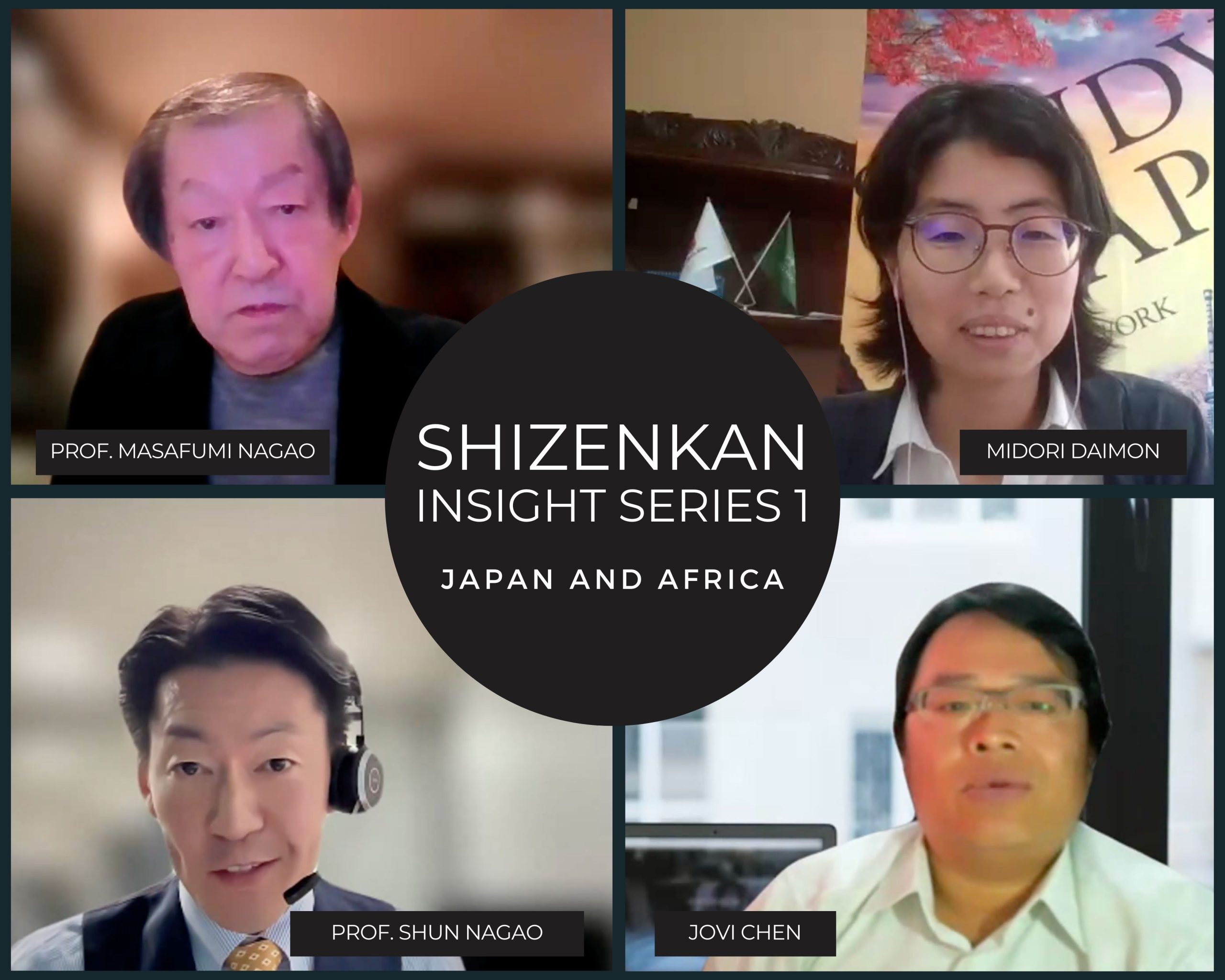 On January 25, Shizenkan hosted the online event “The Mindset and Impact of Leveraging Technology towards Solving Social Issues in Japan and Africa,” the first in the Shizenkan Insights Series. Prof. Masafumi Nagao of the University of Pretoria, Research Advisor at the International Development Center of Japan, and Jovi Chen, CEO of Zen Consortium and Advisor to the Africa Chamber of Commerce, joined the event as guest speakers.