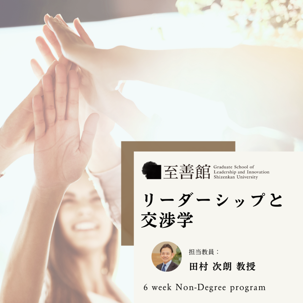 本コースは、効果的な交渉によって、望ましい合意を形成する方法論である交渉学について学びます。交渉学では、交渉プロセスを適切にマネジメントし、効果的な合意形成を実現するための様々な方法論、考え方を学びます。交渉学は、座学による理解を超えた実践知の習得を重視します。本コースにおいても、交渉特有の心理の罠・バイアス、説得技法(詭弁への対処、修辞学)、問題解決に向けた各種のアプローチについて、受講生による実践的な模擬交渉(アクティブラーニング形式)を用いて学びます。本コースの受講によって、自らの交渉スタイルを自己認識(メタ認知)することができ、さらなる改善へとつなげることが可能となるだけでなく、最新の研究成果に基づく交渉理論を身につけることができます。